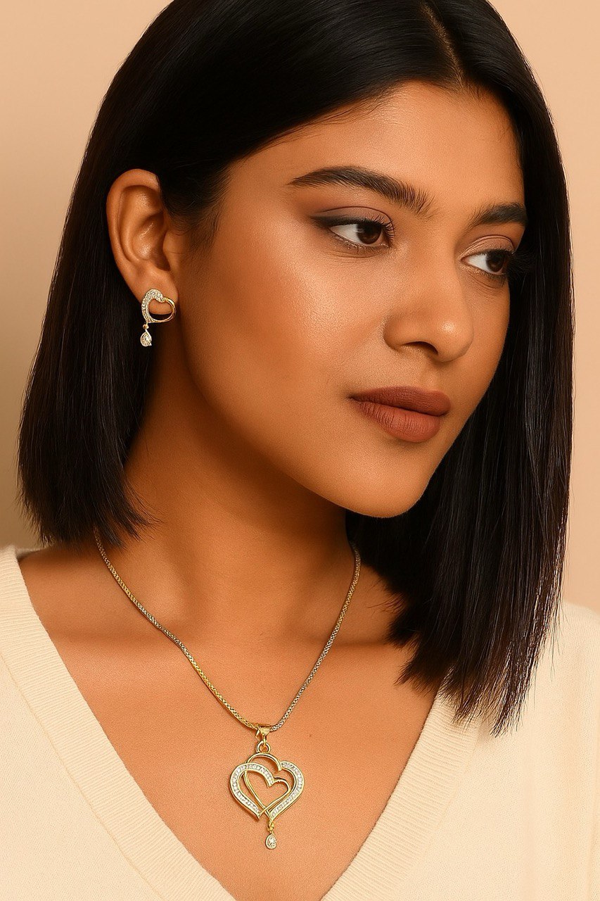 - Beauty– Two hearts becoming one and reaching to the heights of love in a sparkling way with this high grade austrian crystal pendant. The golden hearts are elegant and sleek, formed to entangle perfectly. The pendant gets its better look when worn by a lovely girl. Matches with all attire, and nice piece to flaunt